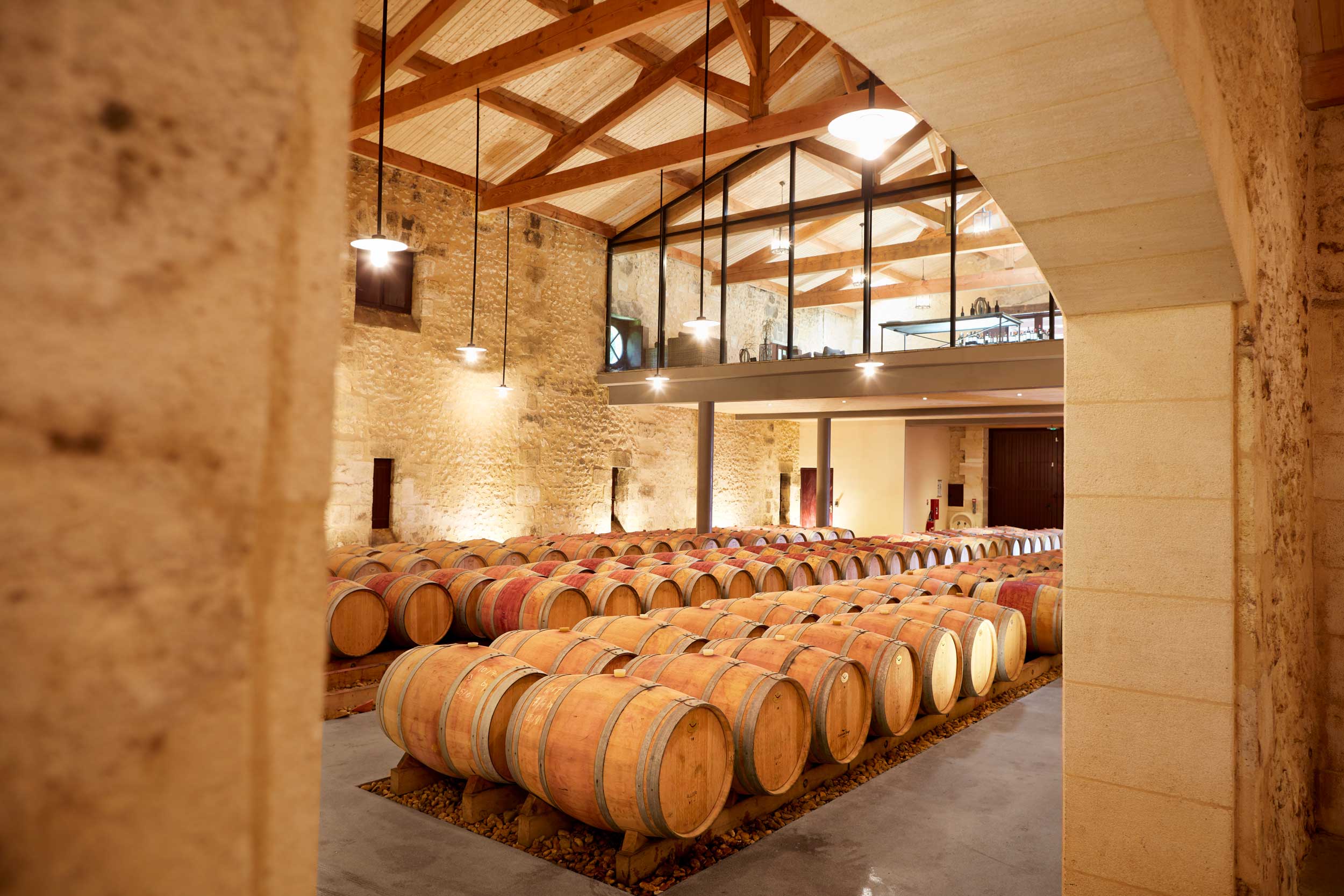 Family property nestled in an enchanting surroundings, with its castle built in 1853 and a large park with hundred-year-old trees. Glazed tasting room overlooking a barrel cellar with stone walls. Several options available: discovery tour, Barrel tasting, Vertical of several vintages.